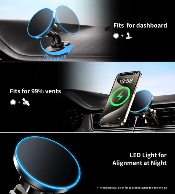 Choetech 15W 2in1 Magnetic Wireless Car Charger, fits for Magsafe Car Charger, Vent/Dashboard Phone Holder Mount