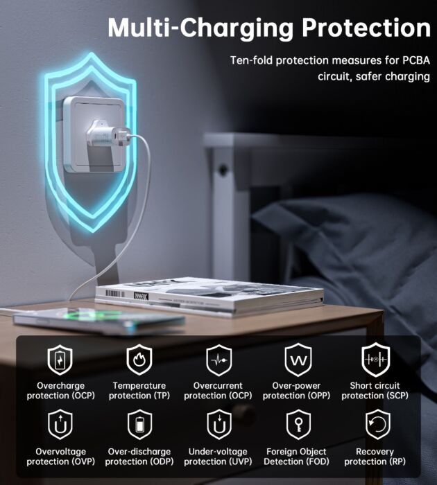 • Multi-Charging Protection: Tenfold protection measures for PCBA circuit, safer charging.