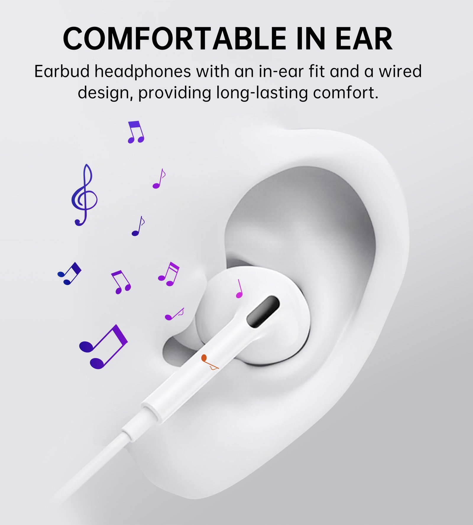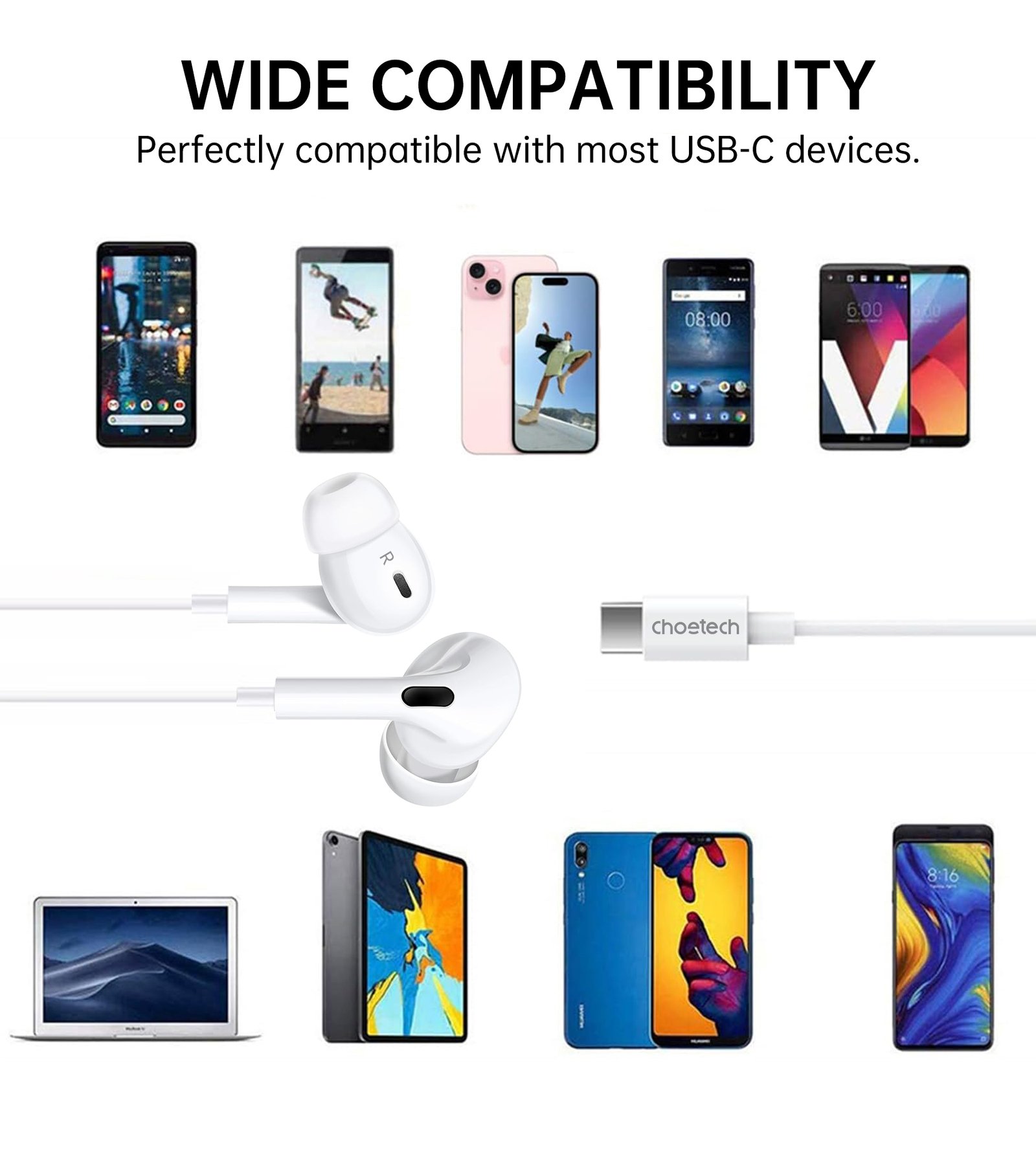 OC-A011-WHT–Choetech A011 USB-C Wired In-Ear Earphone With Volume Control White. Long Lasting Comfort, HD Sound, iOS/Android Compatible, In-line Button Controls, Microphone, 1.2m Cable