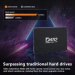 The Dato DS700 2.5″ SSD delivers impressive read and write speeds, significantly improving system responsiveness and reducing load times for applications and files.