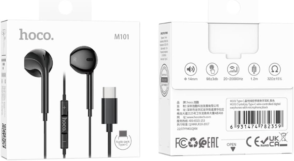 The Hoco M101 Pro Crystal in-ear headphones are a modern headset that stands out for its ergonomics, high reliability and compatibility with smartphones and tablets that support sound transmission via Type-C interface. Equipped with a microphone, these USB-C Earbud Headphones are perfect for listening to music and speaking on the phone.